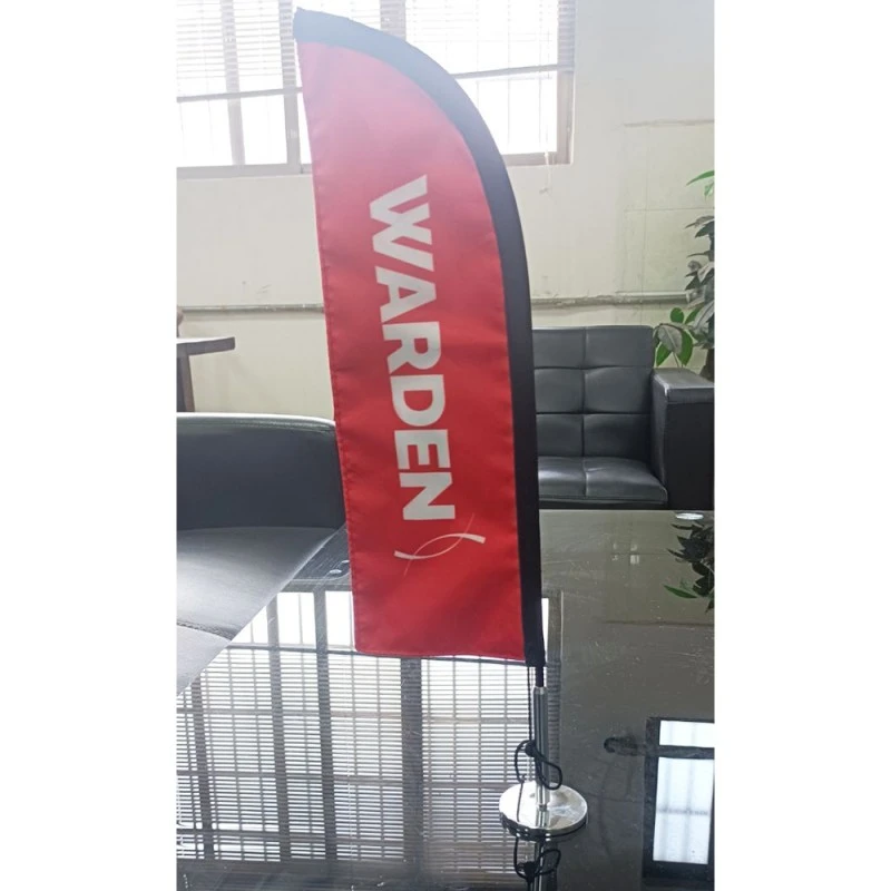 Stolové vlajky môžu byť vytlačené podnikovými logami, sloganmi, obrázkami produktov atď., ktoré slúžia ako prostriedok reklamy a reklamy. Na výstavách, veľtrhoch atď. sú stolové vlajky dôležitým marketingovým nástrojom.